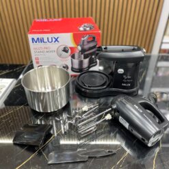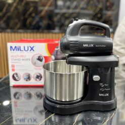 همزن کاسه دار MILUX💥   دوتا سری همزن و دوتا خمیر زن و کاردک   ۵سرعته بعلاوه عملکرد توربو،موتور ۳۰۰وات واقعی ،مخزن کاسه ۲/۸لیتر ،کاسه و سری چرخشی