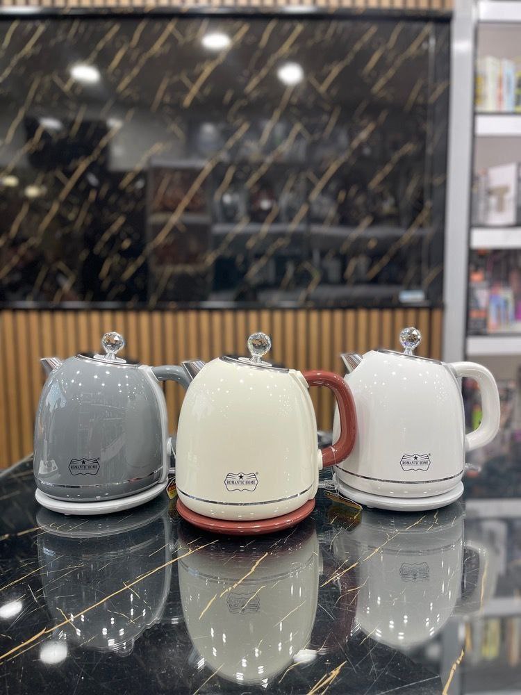 کتری برقی Romantic Home 🔸 برند: Romantic Home 🔸 نوع محصول: کتری برقی با طراحی فانتزی و کلاسیک 🔸 جنس بدنه: دولایه (خارجی فایبر براق، داخلی استیل ضدزنگ درجه ۱) 🔸 ظرفیت: ۱.۸ لیتر 🔸 توان مصرفی: ۱۸۰۰ وات 🔸 سیستم ایمنی: قطعکن خودکار پس از جوشیدن محافظت در برابر داغیِ بیش از حد 🔸 ویژگیها: دسته مقاوم در برابر حرارت طراحی کلاسیک با نگین بالای درب رنگبندی لوکس (سفید، کرم، طوسی و سایر رنگها) 🔸 کاربرد: جوشاندن سریع آب برای چای، قهوه